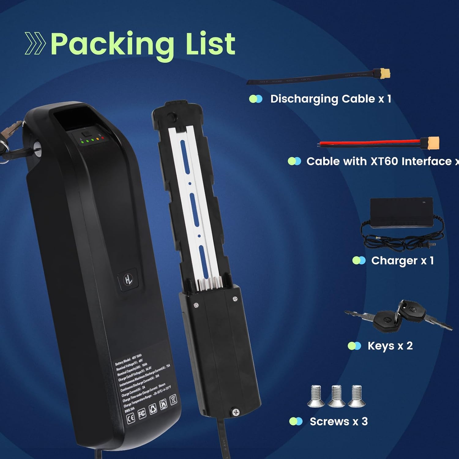 Each purchase includes a 36V 15.6AH battery, a fast 2A charger, two keys for the safety lock and a 5-pin battery holder mounting plate. We stand behind our products with a 3-month free return policy and a 12-month warranty, ensuring you have a great experience with our ebike battery