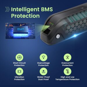 This 36V 15Ah battery pack features a 40A BMS, supporting a maximum constant discharge current of 40A, making it suitable for 36V controllers and motors ranging from 0 to 1500W. Experience reliable power for your electric bike with a weight of only 10.8 lbs