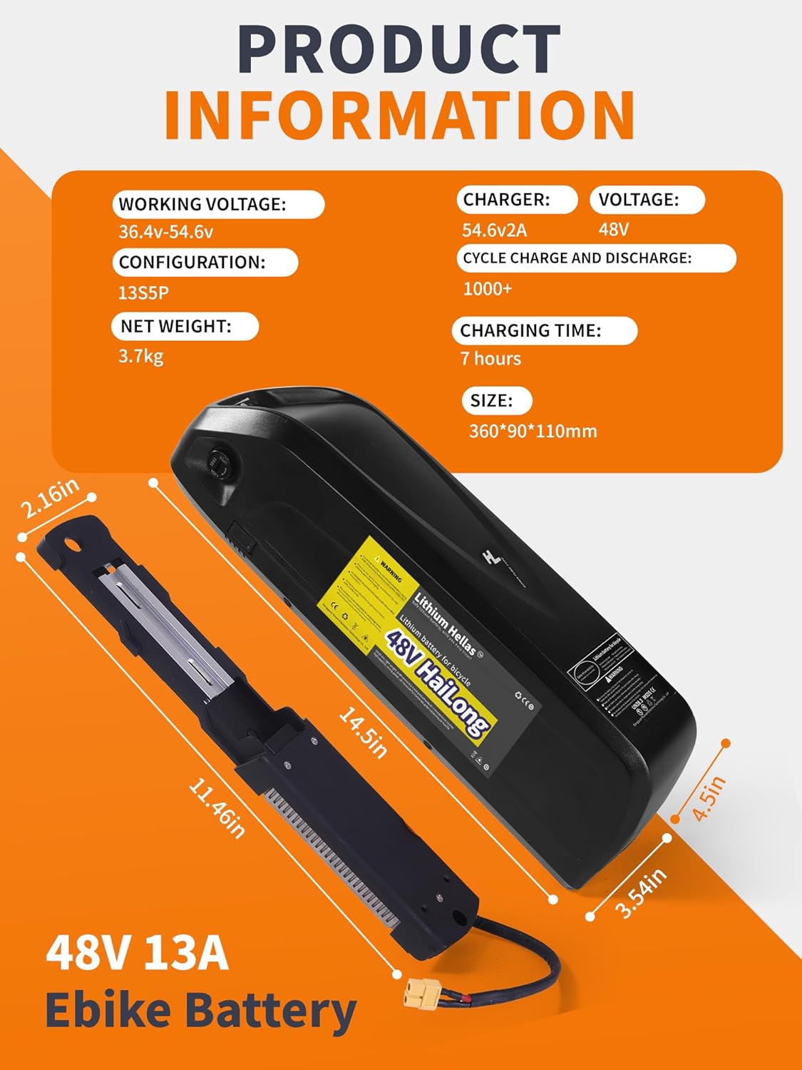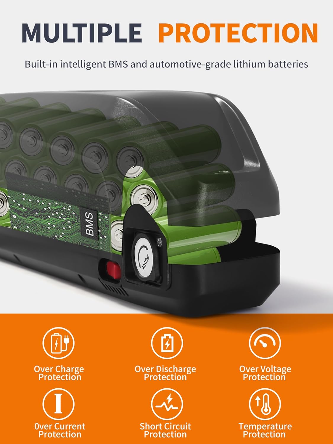 Perfect Battery Replacement: Our 48V e-bike battery features an advanced BMS protection board that guarantees your safety with multiple protections against overcharge, overdischarge, overvoltage, overcurrent, short-circuit, and temperature fluctuations, allowing you to ride your electric bike with peace of mind.
