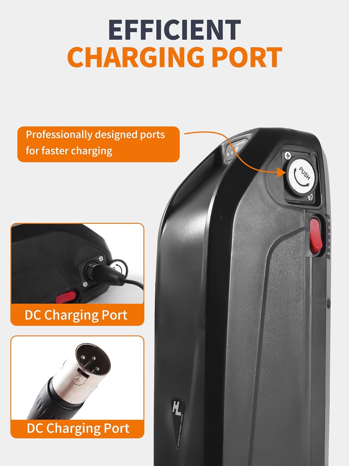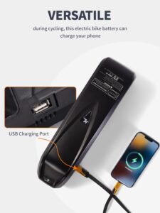 Convenient Power Solutions: The 48V lithium battery for electric bikes is designed for user convenience, featuring an LED power indicator that alerts you when it’s time to recharge. Plus, the built-in USB interface allows you to power devices such as mobile phones and speakers, making it an ideal choice for outdoor adventures.