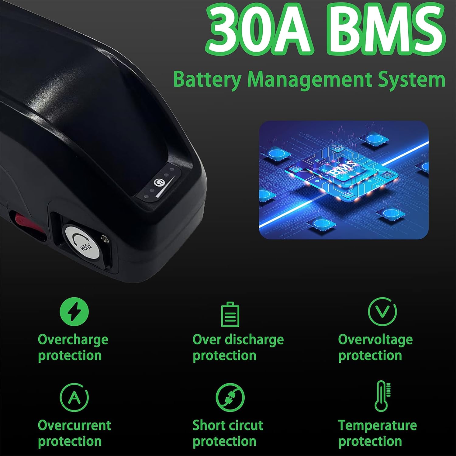 【Safety of E Bike Battery】The 48v 20ah lithium battery is built-in 30A BMS protection board and battery holder ensure stable&safe voltage and better shockproof effect, prevent over charge, over discharge, over current and short circuit