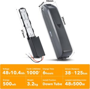 48V Ebike Battery Compatible with Viviebikes Vivi Electric Bike 48V 10.4Ah Lithium Batttery Pack for F26F H8 4pins Ebike Battery Replacement