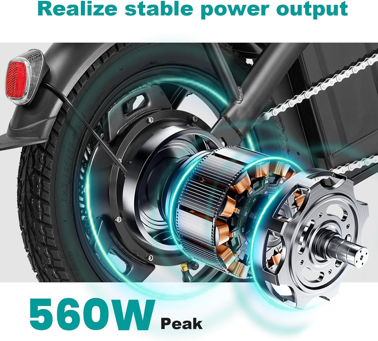 Powerful 560W Motor & 24MPH Speed – This Electric Bike is equipped with a high-torque 560W motor, delivering rapid acceleration and a top speed of 24MPH. Whether you’re commuting in the city or enjoying a leisurely ride, this E-Bike ensures a smooth and efficient journey