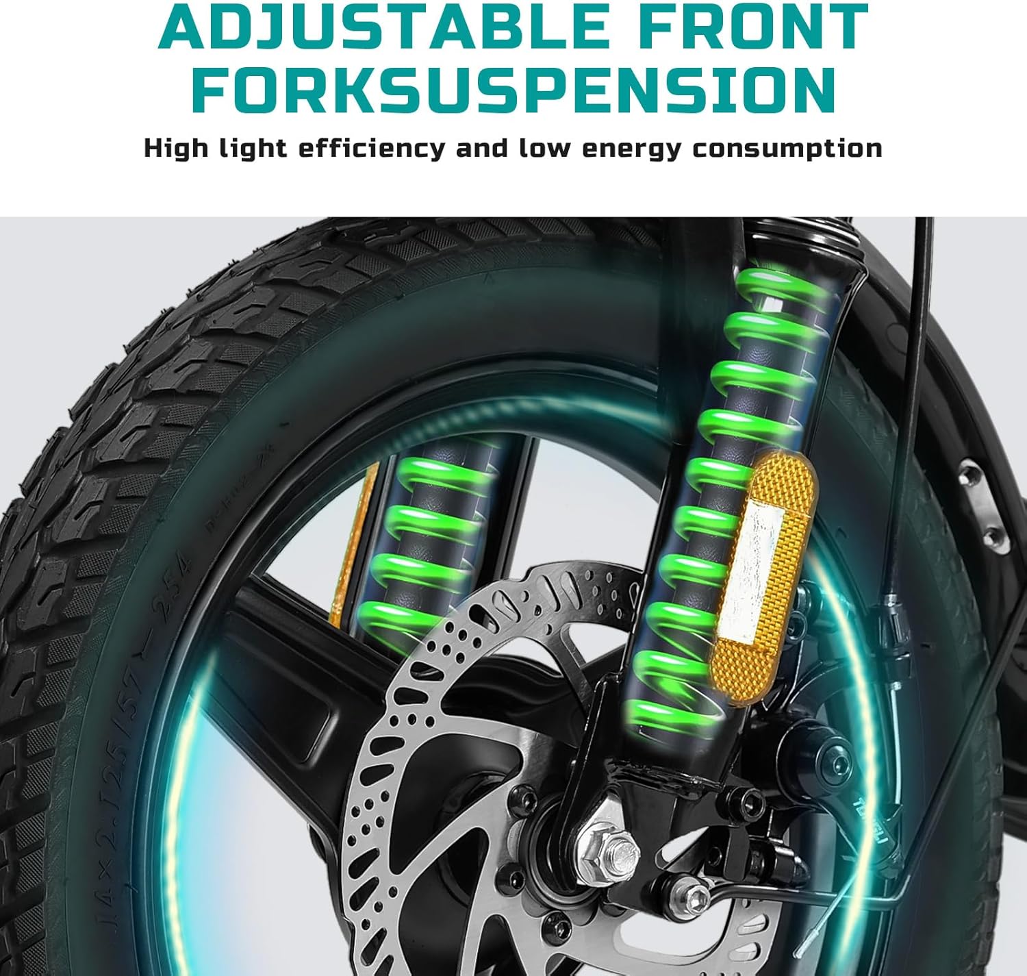 Durable 14″ Wheels & Comfortable Ride – The 14-inch wheels offer stability and smooth handling, while the sturdy frame ensures durability. Whether you’re navigating city streets or paved paths, this Folding Electric Bike provides a comfortable and reliable riding experience.