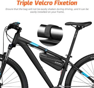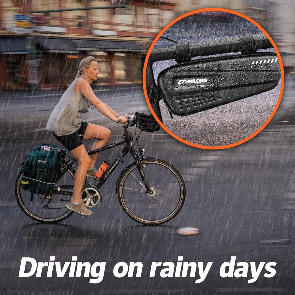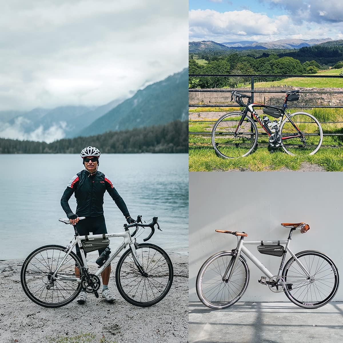 🔋Made by sturdy fabric. It is waterproof, and the unique waterproof glue zippers in double sides will keep your belongings dry. However, it is not recommended to use it in heavy rain for a long time. This bag includes adjustable mounting systems to allow fitment to almost any bike, 3 adjustable wide shoulder straps can be installed stably and safely, you can place your water bottle.