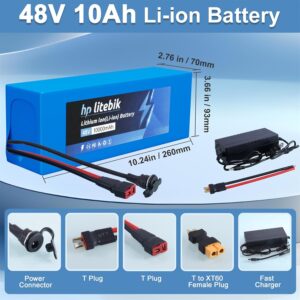Hplitebik 48V 10Ah Lithium Battery can be used in many scenarios like backup battery for your DIY. I believe it has more diversified use, the 30A BMS protection plate can withstand up to 48V 0-1000W controller motor.