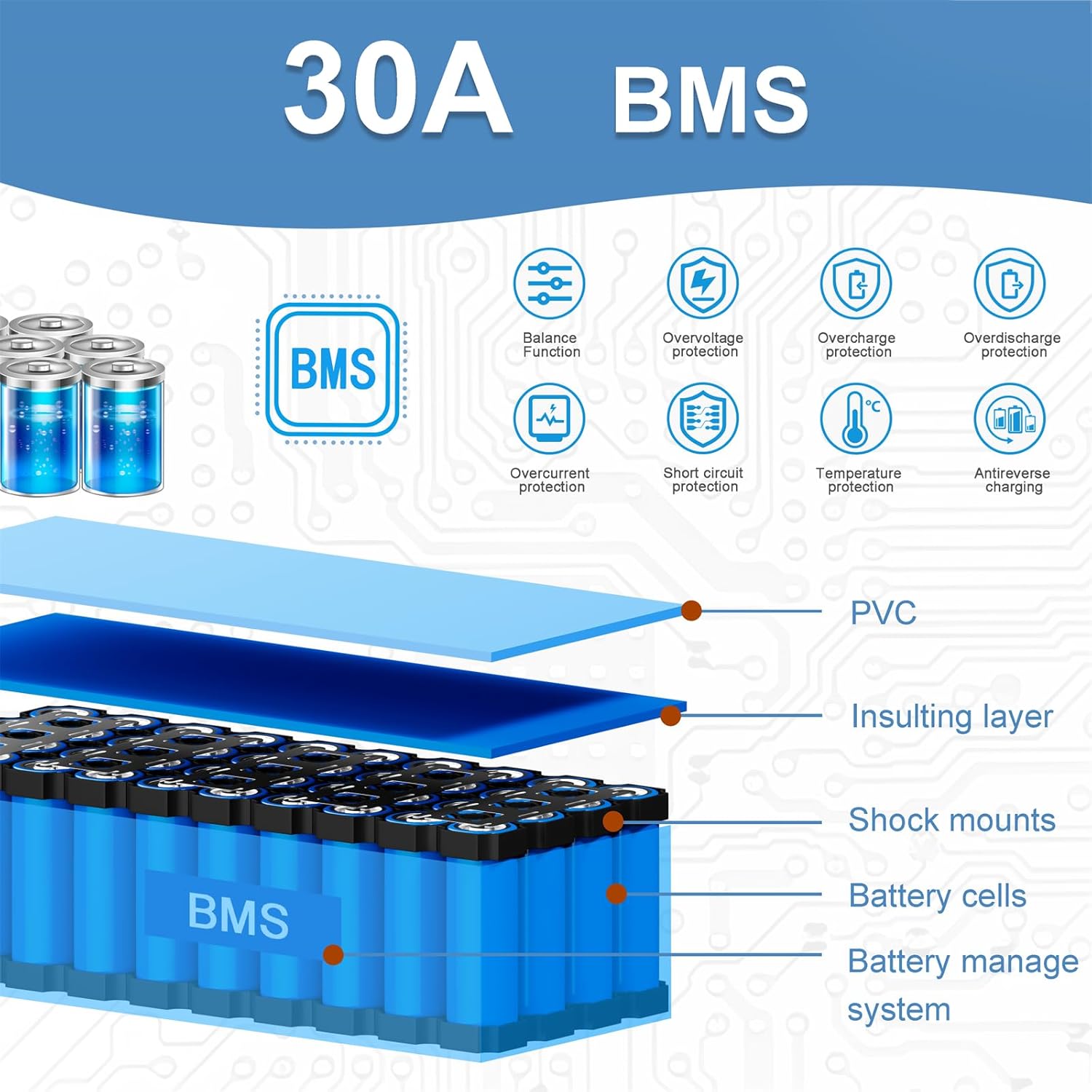 【Upgraded 30A BMS Protection】The HPLITEBIK lithium battery is equipped with a 30A BMS (Battery Management System), providing comprehensive protection against overcharging, over-discharging, over-voltage, over-current, short circuits, and temperature fluctuations. Compared to 20A BMS, it supports higher current and can handle motor power up to 1000W, making it ideal for high-performance applications.