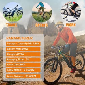 【IP65 Waterproof Case】Our 36V 15AH ebike battery have a curved design.It prevents rainwater from damaging the battery,reduces the possibility of damaging the internal battery. No fear of rainy weather, freer riding! (please don’t stay in the rain for a long time).